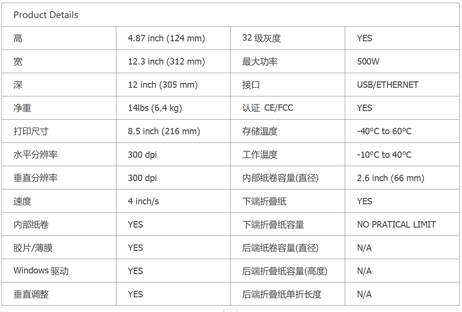 Printrex 843DLG-DT打印机为8英寸黑白 热敏打印机,打印幅面为8.5英寸(216毫米),分辨率为300dpi。通过页头标记传感器自动校准页头位置,内置电压和温度监控,实现自动速度微调和打印头温度补偿,在温度波动的环境下也能保持打印图像的一致性。采用DLA技术修正摩擦,磨损等造成的误差,实现输出图形的长度比例恒定不变。最高支持32级灰度打印。可装载折扇打印纸。